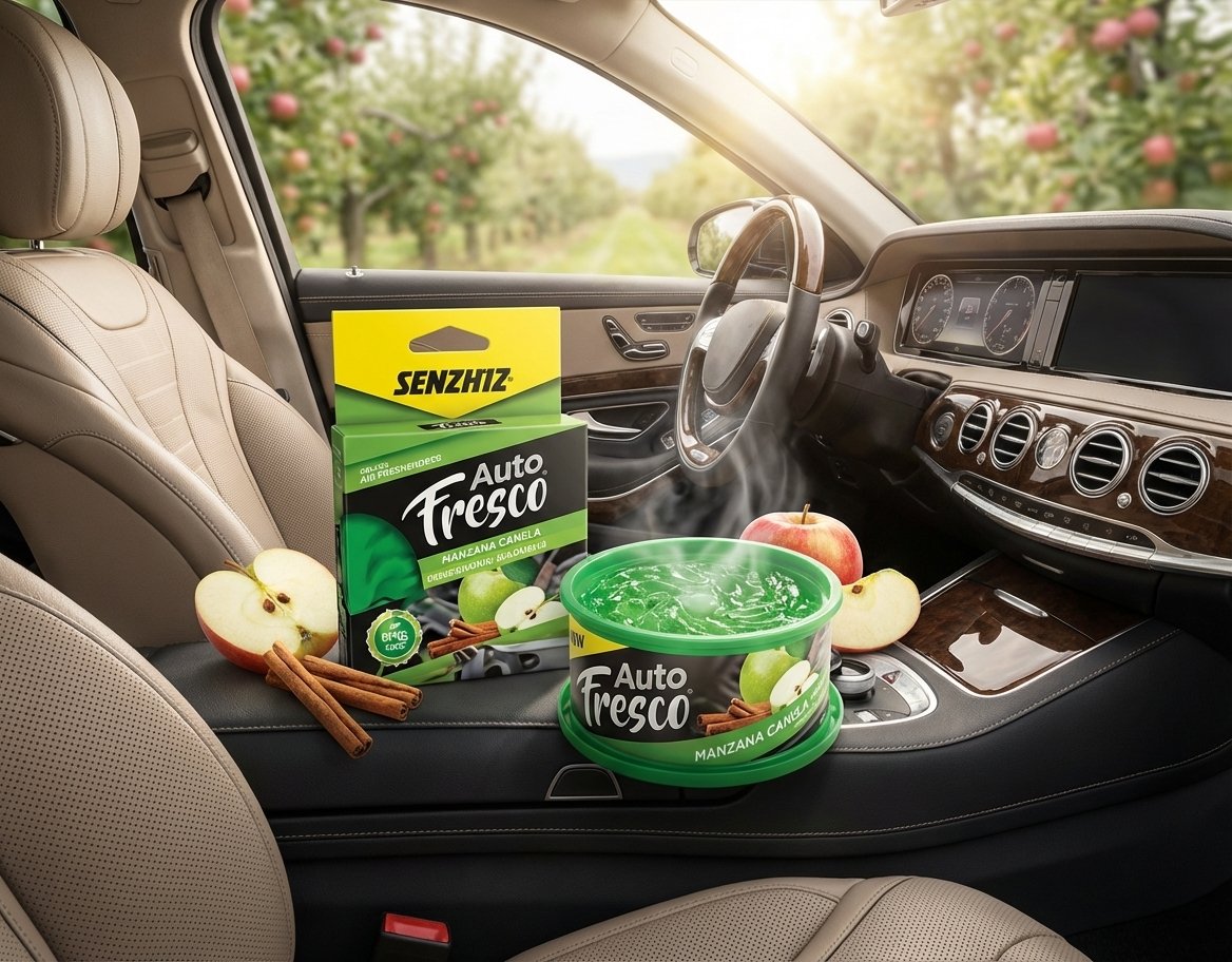 Esta línea incluye diferentes aromas, entre ellos un perfume tipo clásico/neutral (lata gris) y una fragancia manzana con toque de canela (lata verde), ideales para mantener el carro con olor agradable durante semanas. Son perfectos para quienes prefieren ambientadores fijos, sin necesidad de atomizar y con baja probabilidad de derrames.