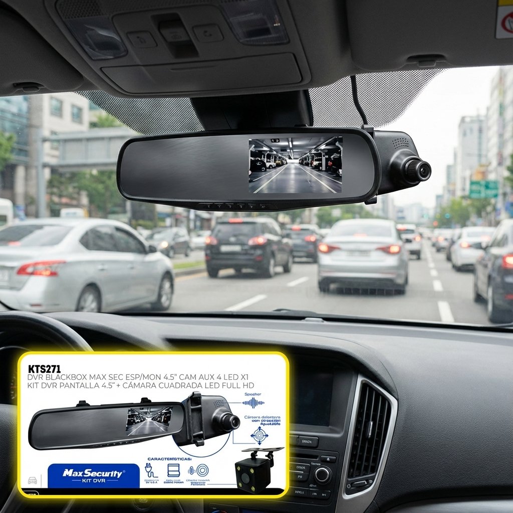 Convierte tu espejo retrovisor en un completo centro de seguridad y grabación con este sistema DVR “Blackbox”. Este dispositivo no solo funciona como un espejo convencional, sino que integra una pantalla de 4.5 pulgadas y una cámara frontal Full HD que graba continuamente todo lo que sucede delante de tu vehículo, sirviendo como testigo crucial en caso de accidentes.