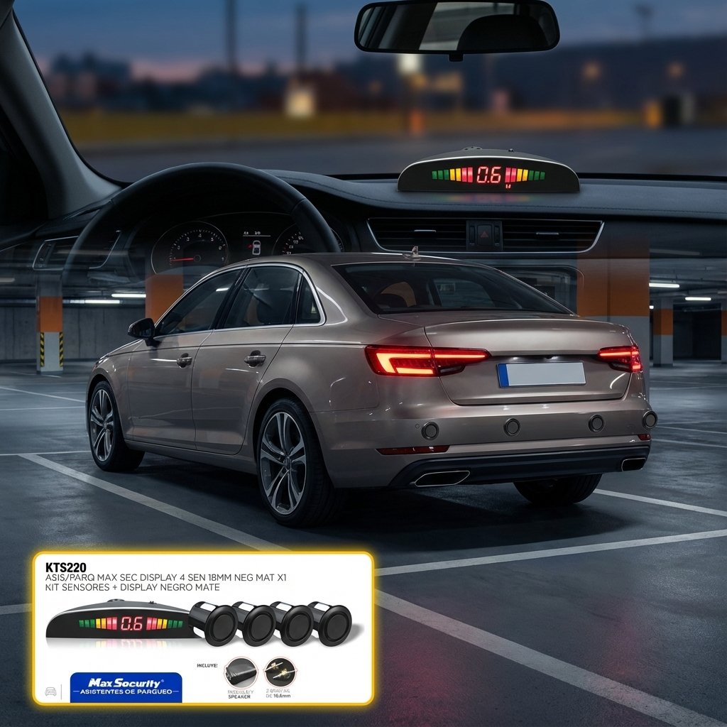 Protege tu vehículo contra golpes y rayones al estacionar con este completo sistema de asistencia. Este kit se destaca por sus sensores con acabado “Negro Mate”, ideales para parachoques con texturas plásticas, camionetas o vehículos con acabados opacos, ofreciendo una apariencia original y discreta.