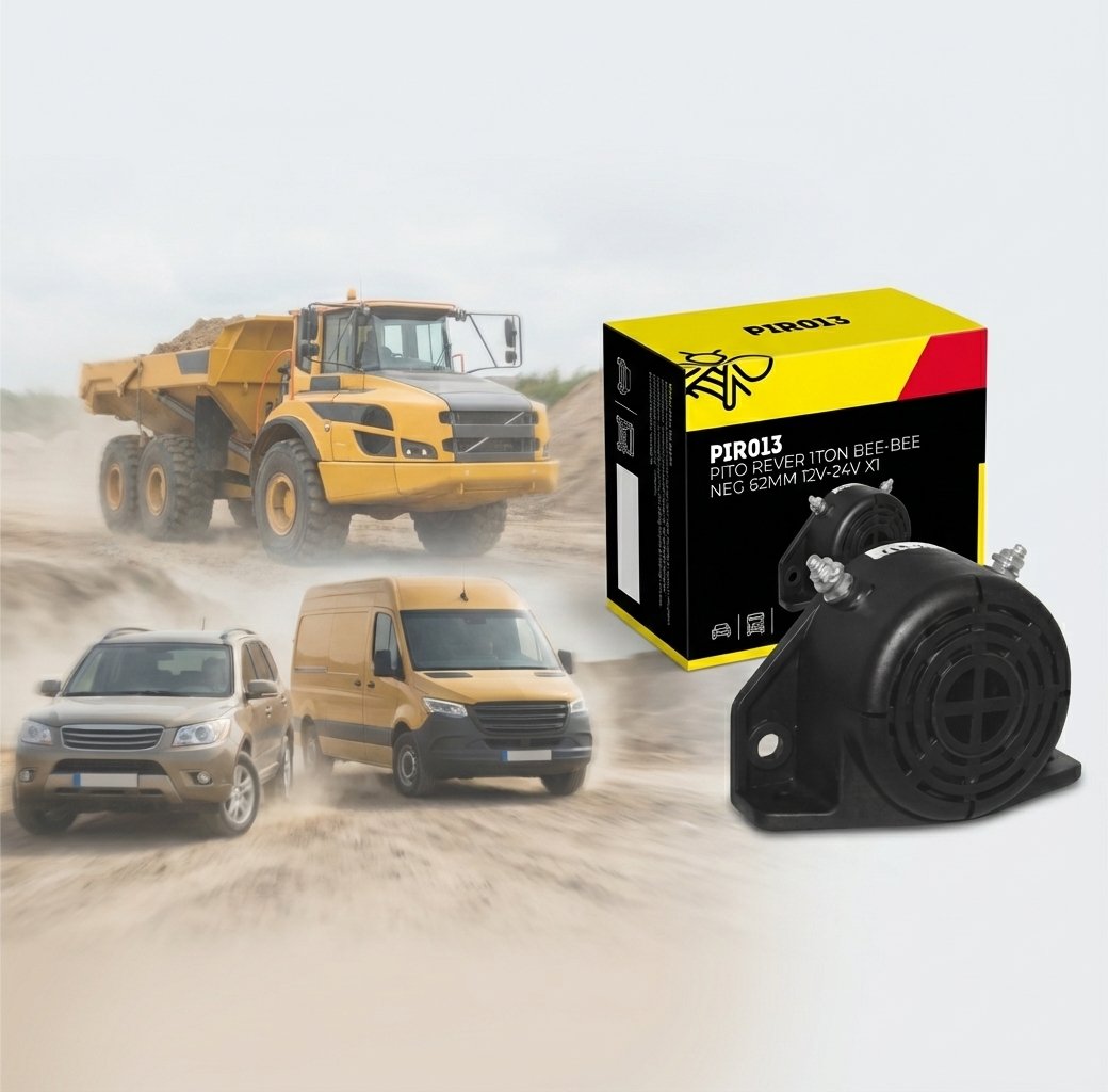 PIRO13 PITO REVER 1TON BEE-BEE NEG 62MM 12V-24V X1 es un pito de reversa tipo “bee-bee” de 62mm en color negro, compatible con sistemas de 12V y 24V. Emite un sonido fuerte y repetitivo al retroceder, ideal para vans, camiones pequeños y vehículos de trabajo que necesitan mayor seguridad al hacer maniobras de reversa.